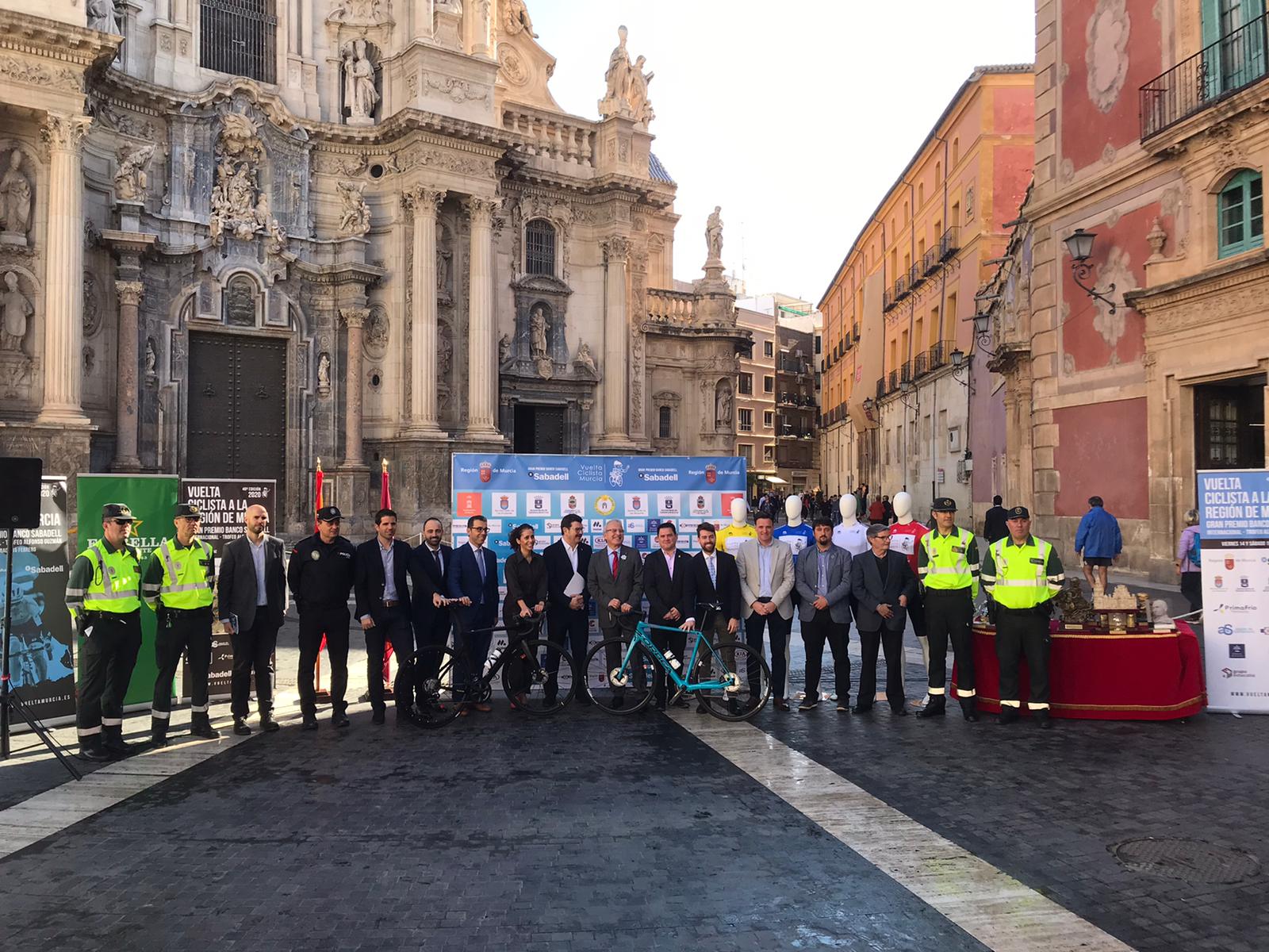 La Plaza del Cardenal Belluga de Murcia ha acogido la presentación oficial de ‘La Vuelta Ciclista a Murcia - Gran Premio Sabadell’, cuya etapa inaugural tendrá lugar el viernes 14 de febrero, con meta en la explanada del Castillo de Caravaca de la Cruz. La llegada del pelotón -que contará con dos emblemas del ciclismo murciano y español como son Alejandro Valverde y Luis León, entre otras figuras internacionales del ciclismo- se espera para las 16.00 horas.