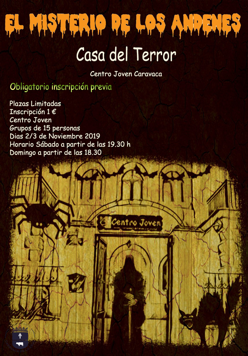 23/10/19. La Concejalía de Juventud del Ayuntamiento de Caravaca convertirá el Centro Joven en una ‘Casa del Terror’. Será con motivo de Halloween y consistirá en la representación de ‘El Misterio de los Andenes’, la historia que descubre el secreto de la antigua casa que ahora alberga este centro juvenil.