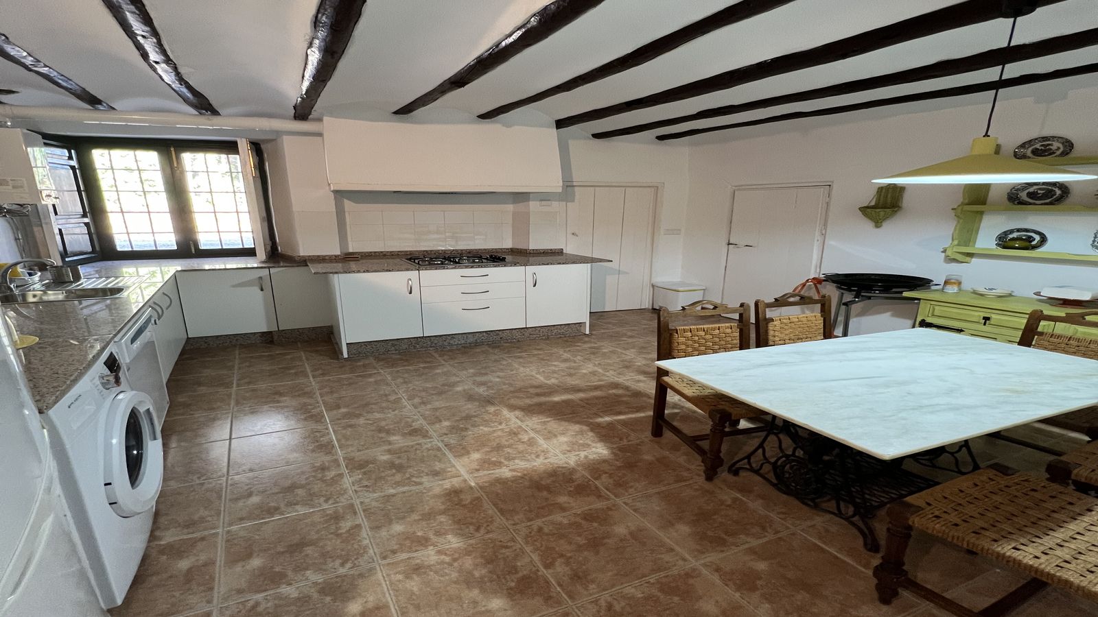 La casa dispone de 4 habitaciones dobles, con 1 habitación con cama de matrimonio, salón, comedor, cocina totalmente equipada, microondas, lavavajillas, lavadora, plancha, TV dotada de Chromecast, netflix…. calefacción eléctrica, chimenea y sensores de humos.