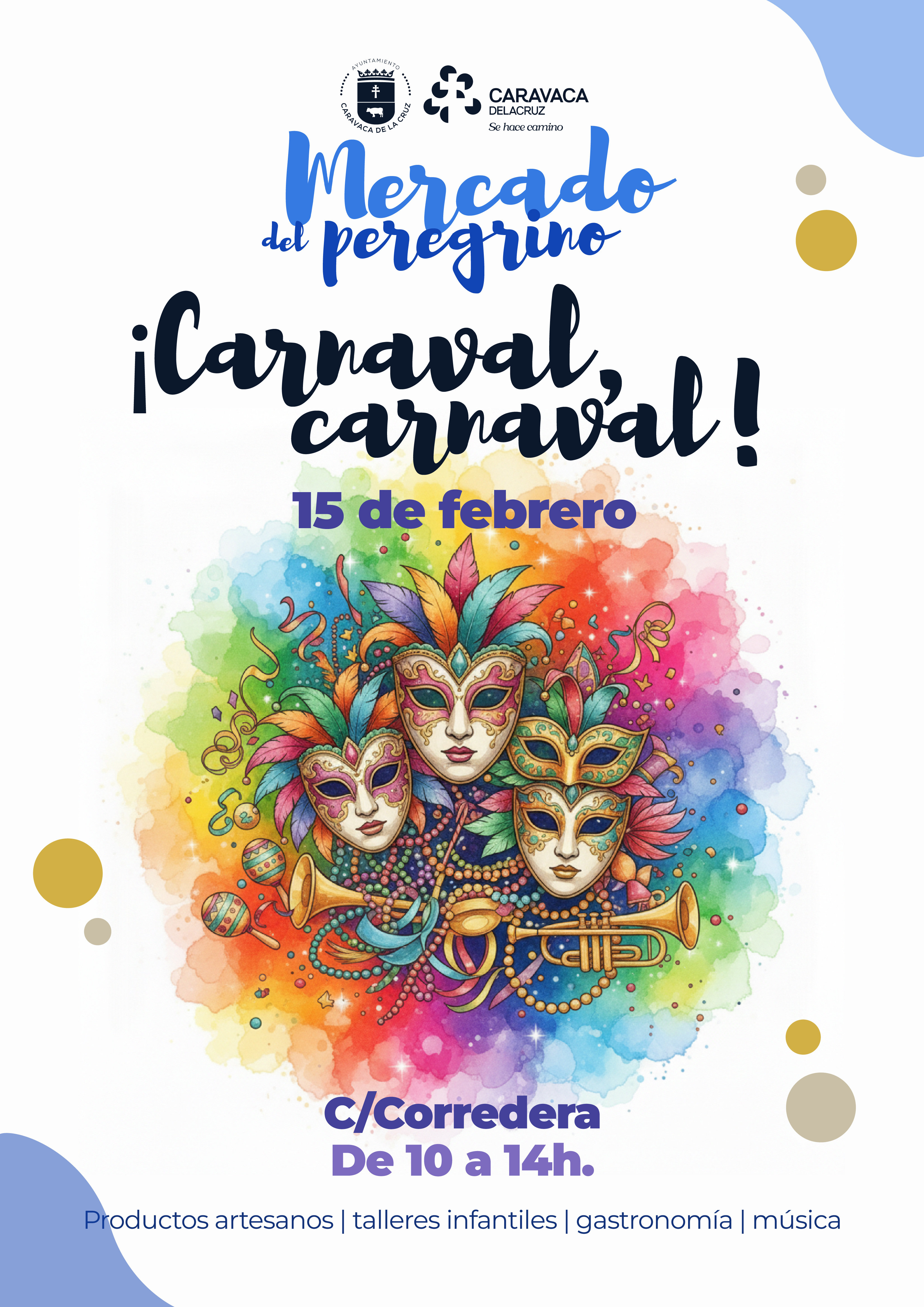 Las actividades del Carnaval se completarán el domingo 15 de febrero con una edición especial del Mercado del Peregrino, que dará inicio a su nueva temporada con temática carnavalesca. El mercado contará con puestos de artesanía y un programa de animación que incluirá degustación gratuita de chocolate caliente y tortas fritas, taller infantil de máscaras con materiales reciclados y pintura natural, concurso de disfraces artesanales para todas las edades, globoflexia, pintacaras y música ambiental.