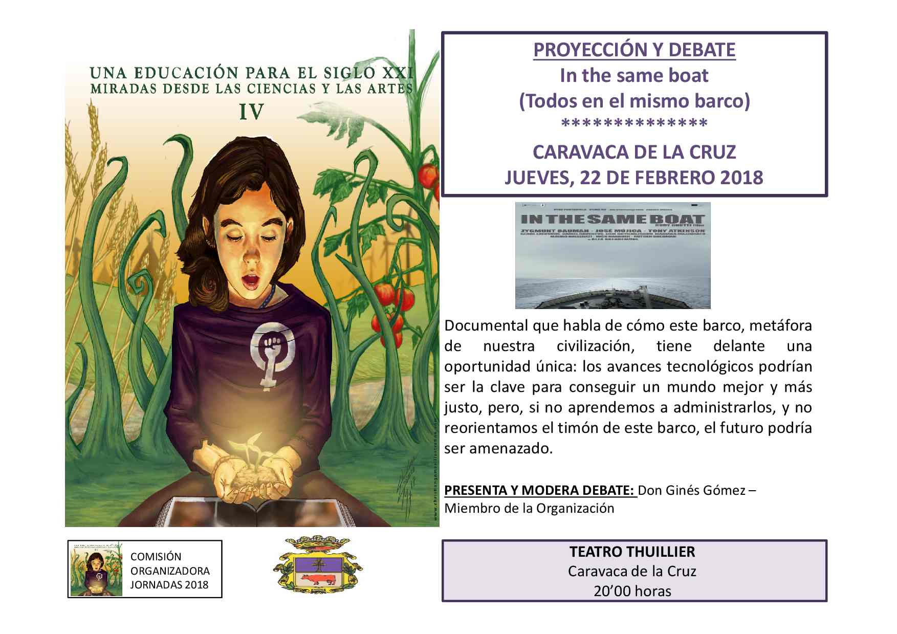 Las actividades programadas en Caravaca de la Cruz en el marco de las jornadas ‘Una educación para el siglo XXI. Miradas desde las ciencias y las artes’ continúan este jueves, 22 de febrero, con la proyección del documental ‘In the same boat’ (‘En el mismo barco’), que estará acompañada por una charla coloquio, presentada y moderada por Ginés Gómez Sabater, miembro de la comisión organizadora de las jornadas. La actividad, de acceso libre, tendrá lugar en el teatro Thuillier, a las 20.00 horas.