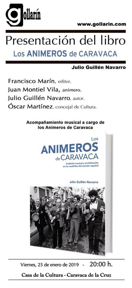 El viernes 25 de enero, se presentará la obra del profesor Julio Guillén Los animeros de Caravaca. Tradición musical y revitalización en las cuadrillas del sureste español. El acto tendrá lugar a las 20:00 en la Casa de la Cultura "Emilio Sáez". Otro acto de presentación también tendrá lugar en el colegio Virgen de la Candelaria, en Barranda. Si desea más información sobre le libro o el acto, consulte la información completa en este enlace: http://www.caravaca.org/index.php?option=com_content&task=view&id=2750&Itemid=60.