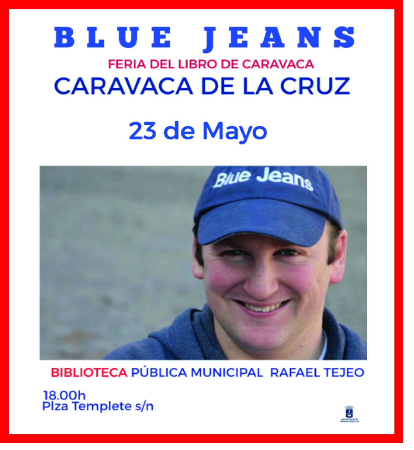 23/05/18. El escritor juvenil Blue Jeans (Francisco de Paula) se encuentra hoy, miércoles 23 de mayo, con sus lectores en Caravaca de la Cruz, dentro de los actos programados con motivo de la Feria del Libro. El acto tendrá lugar en el salón de actos de la Casa de la Cultura ‘Emilio Sáez’, a las 18.00 horas. Posteriormente, sobre las 19.00 horas, estará en las casetas de la feria, firmando ejemplares.